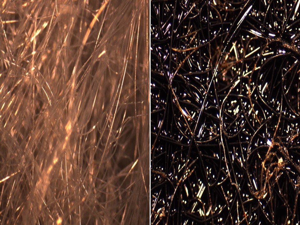 Figura 2. Geotextil antes y después de su impregnación con asfalto